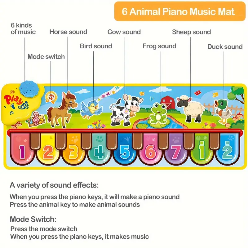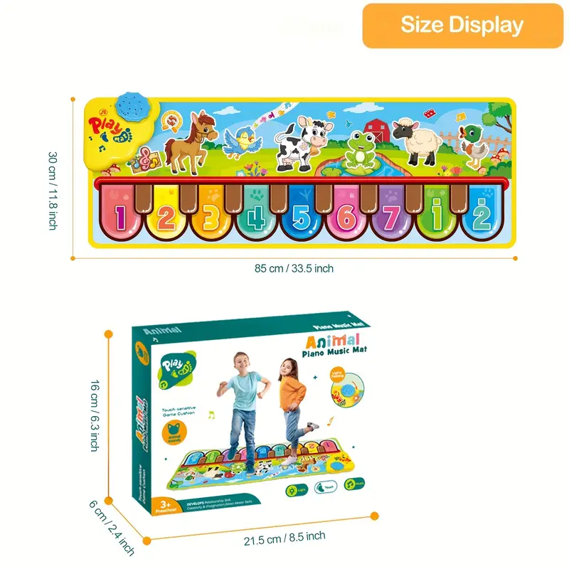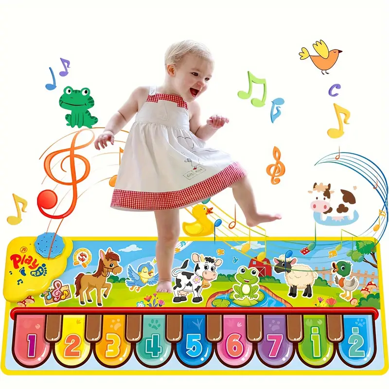 سجادة موسيقية تفاعلية بـ24 صوتًا - لوحة بيانو أرضية، سجادة بتصميم حيوانات، بوليستر، متعدد الألوان، ألعاب، لمس